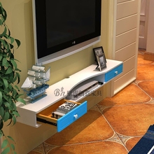 简约地中海壁挂电视柜简易小美式电视机柜卧室客厅背景墙壁吊柜窄