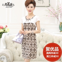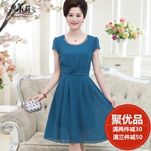 中年女装夏装大码修身短袖中老年年轻妈妈装连衣裙雪纺30-40-50岁
