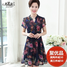 2017中年妈妈装夏装连衣裙中老年女装夏季雪纺裙子30-40-50岁短袖