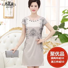 2017新款中老年女装夏装连衣裙中年大码胖妈妈装短袖裙子40-50岁