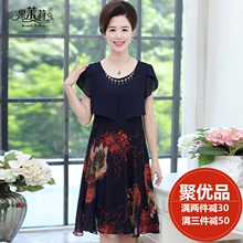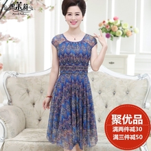 新款中年妇女装夏装雪纺连衣裙中老年夏季妈妈装裙子30-40岁显瘦