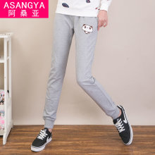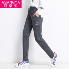 阿桑亚春秋新品纯棉小直筒运动裤女显瘦修身休闲长裤小脚针织卫裤
