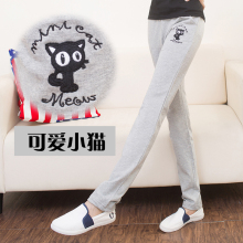 2017春季小脚运动裤女显瘦修身卫裤原创幸福刺绣小直筒棉休闲长裤