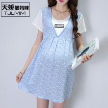 2017新款时尚孕妇装夏装连衣裙短袖夏季纯棉孕妇裙子两件套潮妈薄