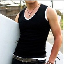 新款特卖 V领男式打底衫 纯色无袖背心 修身宽肩背心 莫代尔 男士