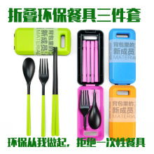 韩式便携旅行餐具三件套装户外野餐塑料折叠筷 可拼接叉勺
