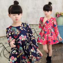 2017春季新款童装女童提花长袖韩版中大童印花公主蓬蓬袖连衣裙
