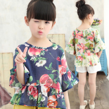 女童夏装2017新款韩版大花短袖T恤中大童宝宝雪纺打底衫半袖上衣