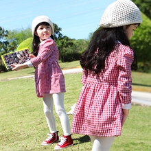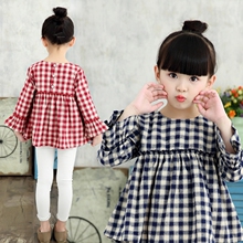 女童春装2017新款韩版儿童纯棉格子上衣衬衣中大童女孩长袖衬衫裙