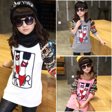 女童春装2017新款韩版儿童纯棉格子上衣中大童女孩打底T恤娃娃衫
