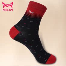 猫人棉袜男 加厚中筒男袜子防臭吸汗透气商务提花四季5双礼盒