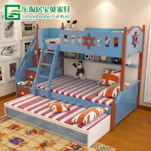 地中海实木高低床儿童床男孩女孩双层床子母床上下床组合床家具