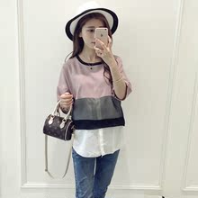 孕妇装夏装韩版孕妇上衣宽松时尚孕妇雪纺衫拼接孕妇衬衫2017新款
