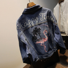 欧洲站直供2017春装新款仙鹤刺绣宽松百搭牛仔衣外套女韩版复古潮