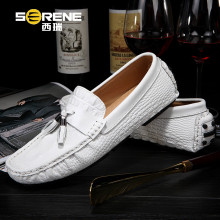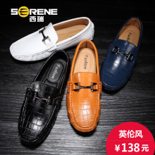 不磨脚跟16年夏季男士英伦白色豆豆鞋圆头真皮鳄鱼纹男鞋驾车潮鞋