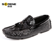 17年春夏季豆豆鞋男皮鞋黑色真皮英伦男生45码休闲鳄鱼纹潮流男鞋