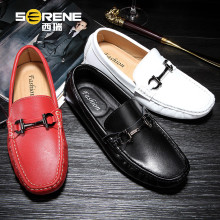2017年夏季新款黑色商务正装豆豆鞋男士真皮鞋子牛皮套脚红色懒人
