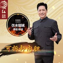 中老年男士中山装套装秋冬加厚爸爸套装老年人加绒中山服外套加绒