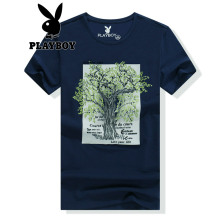 花花公子春夏短袖t恤男 印花时尚棉弹圆领男士短袖T恤男打底衫