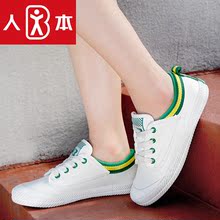 人本休闲街拍运动风帆布鞋女 平底学生小白鞋 纯色简约情侣款板鞋