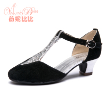 薇妮比比儿童拉丁舞鞋公主鞋女童高跟鞋学生单鞋儿童亮片演出鞋