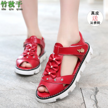 女童凉鞋夏季真皮公主鞋2017新款中大童学生儿童鞋鱼嘴牛皮沙滩鞋