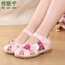 真皮女童凉鞋2017新款夏季包头儿童鞋花朵宝宝公主鞋中大童学生鞋