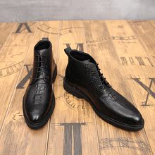 艺呈新款鳄鱼纹皮靴男英伦时尚马丁靴尖头牛皮短靴潮高帮真皮男鞋