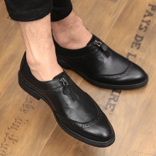 夏季欧美男鞋休闲皮鞋男真皮布洛克雕花潮鞋英伦套脚复古正品鞋子