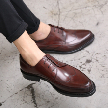 夏季男士休闲皮鞋英伦布洛克真皮发型师鞋男韩版系带尖头雕花男鞋