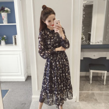 2017春装新款女雪纺连衣裙韩版时尚长袖修身显瘦碎花长裙气质收腰