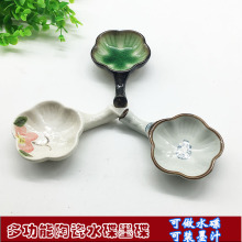 文房四宝多功能陶瓷水碟梅花状墨碟小水碗 毛笔笔搁笔架书法用品
