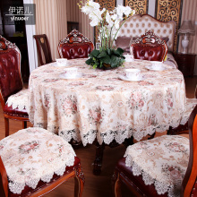 欧式田园新款 田园提花 布艺餐桌布圆桌布桌旗椅垫椅背盖布