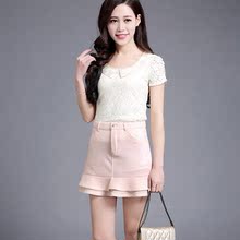 鱼尾荷叶边短裤女2017春夏新款韩版高腰裙裤显瘦修身阔腿裤热裤