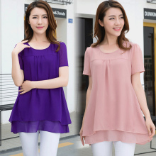 夏装胖妹妹宽松遮肚子雪纺衫女短袖 中长款大码胖mm显瘦韩版上衣