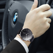 冠琴新品手表男士超薄真皮带男表 时尚潮流石英表品质多功能腕表