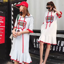 欧洲站条纹卫衣女中长款春夏季大码宽松连帽套头韩版潮学生帽衫潮
