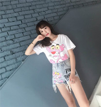 欧洲站套装新款刺绣珠片跳跳虎牛仔短裤短袖t恤时尚两件套女夏潮