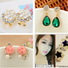 韩国版小饰品百搭水钻珍珠耳环防过敏耳饰耳坠 耳花 四叶草耳钉女