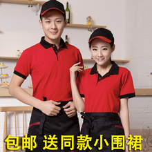 服务员工作服t恤定制短袖男女酒店快餐厅饭店工装t恤长袖印字拼领