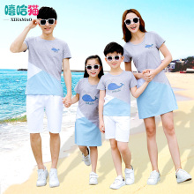 亲子装夏装2017新款沙滩休闲套装一家三口度假装家庭装母子母女装