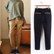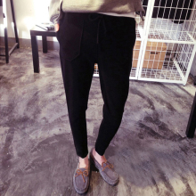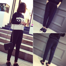 大码女装胖妹妹春秋显瘦休闲裤女学生韩版黑色长裤子纯色宽松2016
