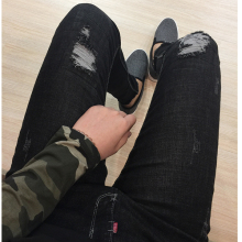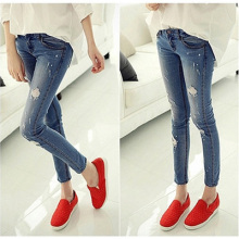 韩版春夏加大码女装胖妹妹胖MM修身破洞弹力牛仔小脚裤牛仔裤女潮