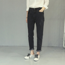 大码牛仔裤女裤破洞裤胖妹妹春装潮高腰加肥加大修身韩版小脚裤