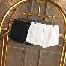 大码女装胖mm夏装韩版200斤加肥加大码沙滩短裤白色破洞牛仔热裤