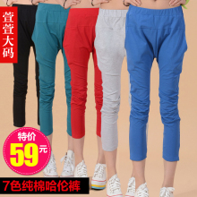 【特不退不换】萱萱大码女装2017胖mm休闲九分纯棉休闲哈伦裤子