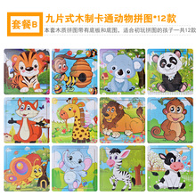 男宝宝木制质立体拼图9粒六面画儿童益智力积木玩具1-2-3周岁女孩