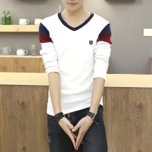 夏季青少年薄款长袖t恤男V领内搭体恤鸡心领修身男士百搭打底衫潮