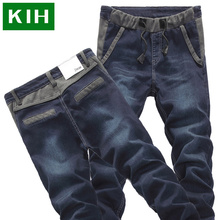 jeans牛仔裤男修身型松紧束腰小脚牛子裤潮流前线松紧带直筒裤子