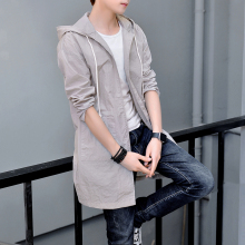 男外套中长款夏季连帽夹克韩版修身衣服青年风衣休闲潮流防晒衣男
